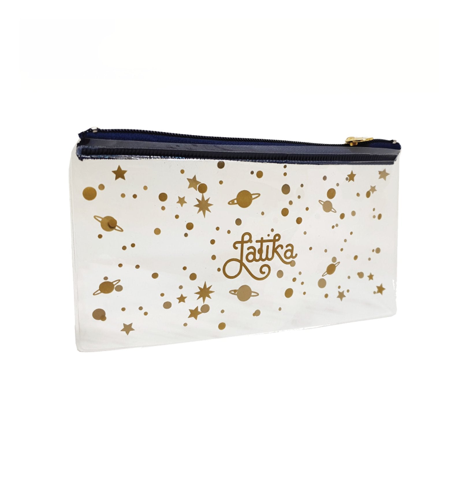 Necessaire em solda eletrônica confeccionada em pvc cristal com cursor personalizado, silk 3 cores.